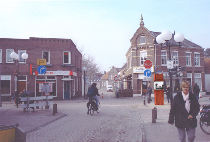 Ons voorstel is op iedere door U aangegeven locatie een eigenzinnig vormgegeven billboard te plaatsen, met op de 2 zichtzijden een foto van het gebied dat verlaten wordt. Bij het passeren krijg je naast de nieuwe een laatste beeld van de oude werkelijkheid. Een herinnering aan wat achter je ligt.