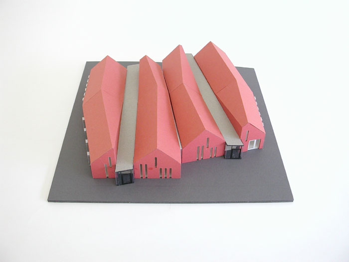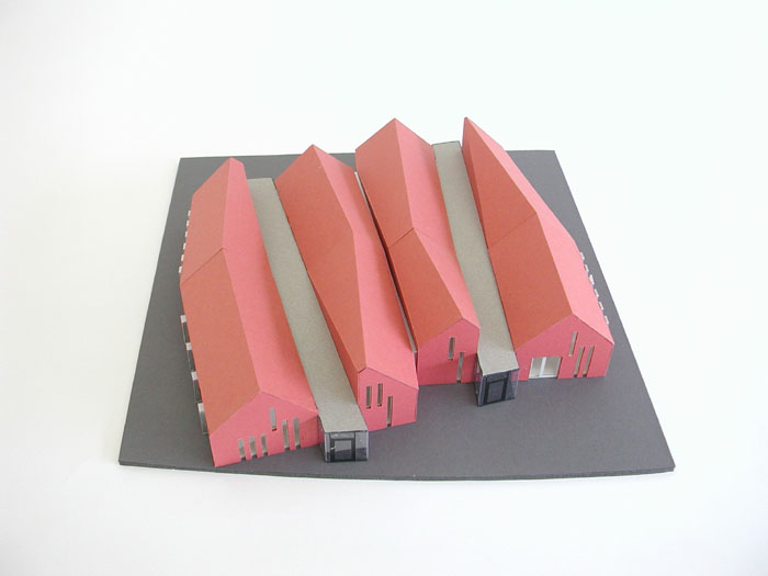 Aanvankelijk hebben studies met nok- en goothoogte geleid tot één bouwvolume (zie modellen) dat qua vorm en schaal niet wenselijk was. Naar aanleiding hiervan werd de opgave nader geformuleerd: kleinschaligheid voor wat betreft de hoofdvorm met een hedendaagse uitstraling.
