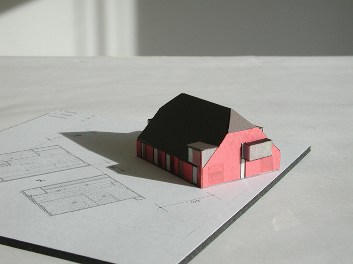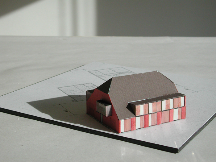 De ruimte leende zich er slechts voor op de begane grond 6 units te realiseren. Vandaar dat de gehele bovenverdieping als gemeenschappelijke ruimte is bestemd en de kapconstructie zichtbaar kan blijven. De massa blijft ongewijzigd, terwijl de buitengevels worden voorzien van de nodige perforaties.