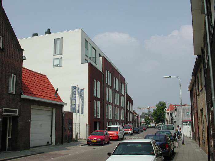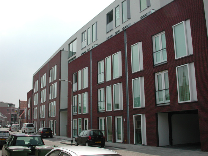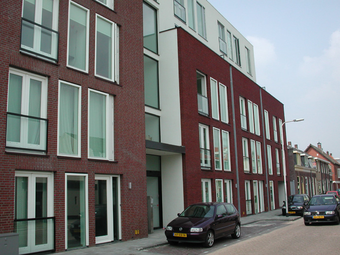 In het bouwblok zelf is gekozen voor een stedelijke verkaveling: een corridor als ontsluitingsgang van waaruit alle woningen bereikbaar zijn. Door deze vorm van ontsluiting worden beide langsgevels als voorkant vorm gegeven. Daarnaast is het niet alleen mogelijk meer woningen op minder ruimte te realiseren, maar ook meer woonkwaliteit door ondiepe maar brede woningen. De corridors worden voorzien van daglicht door de gemeenschappelijke ruimte tegenover de lift, de transparante trappenhuizen en door met veiligheidsglas beklede vloer- en daksparingen ter plaatse van de corridor zelf; op de hoger gelegen verdiepingen zijn de kopwanden ter plaatse van de trappenhuizen en de corridor tevens uitgevoerd in glas.
