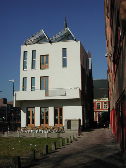 Het theatercafé op maaiveldniveau wordt vanaf de Korte Heuvel ontsloten terwijl de overige horecaruimten vanaf de entree tegenover de Heuvelpoort toegankelijk zijn.
