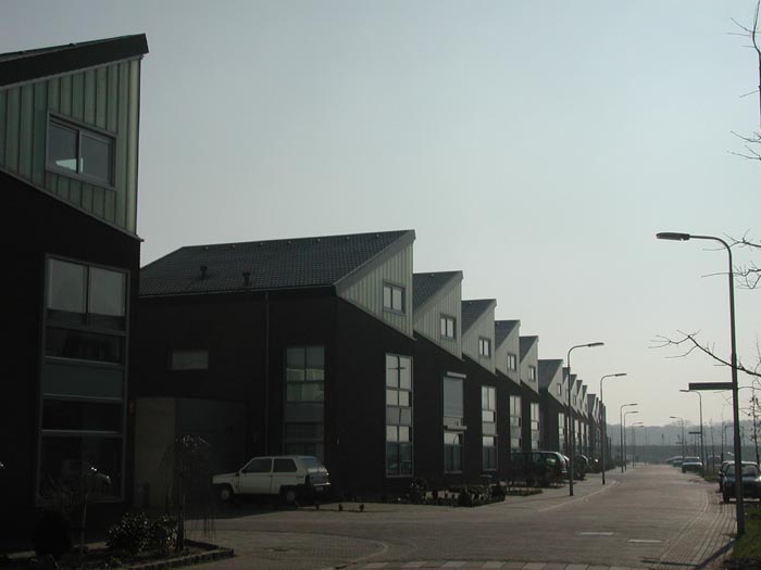 Deze 3e bouwlaag over de gehele diepte is alleen toegestaan bij de hoekwoningen in de binnenstraten, niet ter plaatse van de randbebouwing, noch ter plaatse van de knip van de bouwblokken. Daarnaast wordt met deze bovenbouw een handreiking gedaan naar de reguliere zelfbouw voor wat betreft de dakkapel. Naar onze mening zou iedere woning kunnen worden voorzien van een dakkapel ter breedte van de woning en ter diepte van de 2e verdiepingsvloer; de buitengevel van de dakkapel moet worden bekleed met verticale glasstroken, op sommige plaatsen transparant uitgevoerd.