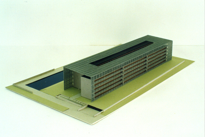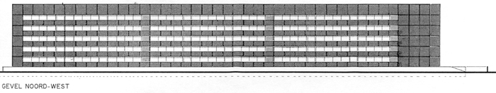 Het gebouw zelf bestaat uit een langgerekte ranke hal, aan weerszijden geflankeerd door een bouwdeel van 5 lagen hoog. Ieder bouwdeel is op de koppen en aan de gemeenschappelijke halzijde gesloten terwijl de lange buitengevel transparant is vormgegeven. De verschillende langgerekte volumes zijn omsloten door een uit stalen schermen opgebouwde huls. Dit stalen scherm waarborgt de openheid van de langsgevels van de woningen terwijl het van buiten naar binnen voldoende privacy verzekert.