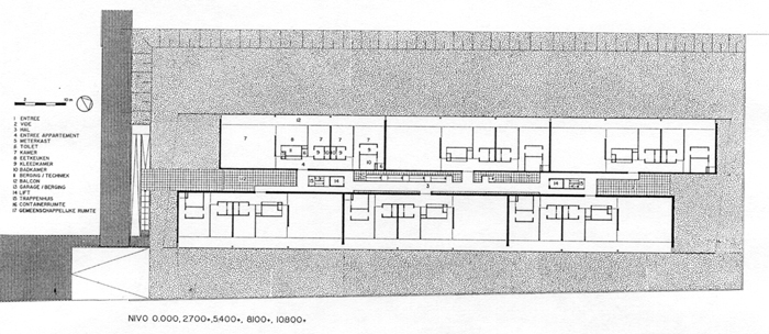 Zoals reeds hierboven vermeld is op een verhoogd plateau een woongebouw geplaatst.