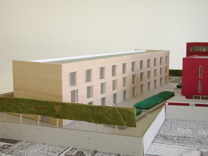 Het lange bouwblok op het achterterrein is onderkelderd en biedt ruimte aan 11 grondgebonden woningen. De tuinen zijn op het westen georiënteerd.