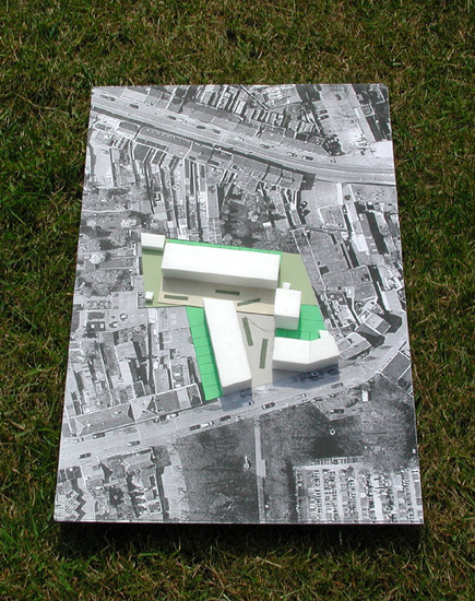 Het plan bestaat uit een 4-tal zelfstandige, ongelijkvormige bouwblokken die samen een gemeenschappelijk binnenterrein omsluiten. De bouwblokken zijn zodanig gepositioneerd dat zij zowel aansluiten op de bestaande bebouwing als ook richting en betekenis geven aan het achterliggend gebied. Daarnaast is ook rekening gehouden met mogelijke verbindingen naar later te ontwikkelen aansluitende terreinen.